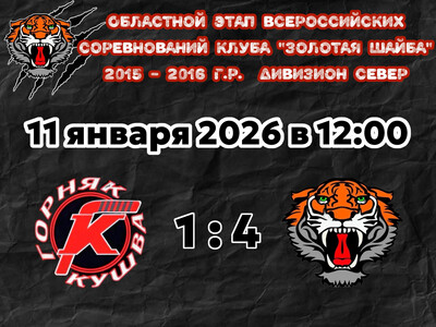 11 января 2026г. состоялся календарный матч Областного этапа Всероссийских соревнований клуба "Золотая шайба" | |